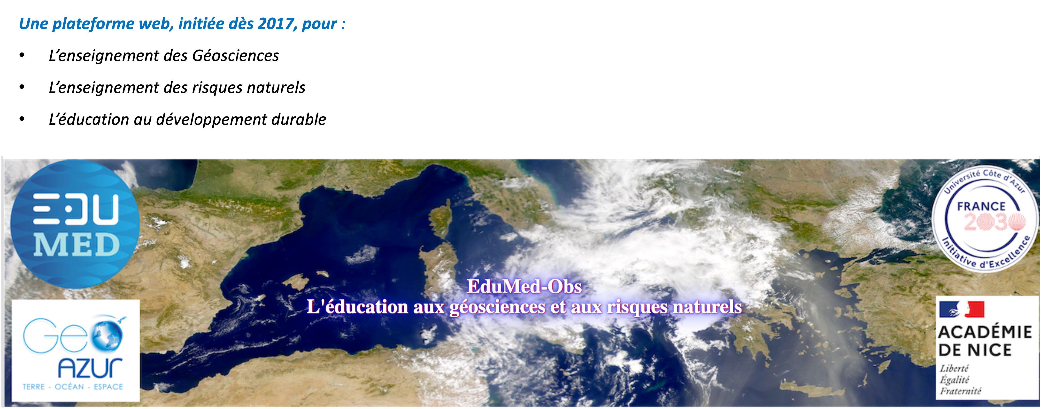 Depuis 2017, le développement de l'Observatoire EduMed repose sur la coopération entre les chercheurs d'Université Côte d'Azur, de Géoazur, et les enseignants de l'Académie de Nice, missionés pour le fonctionnement d'EduMed. Leur implication et leur expertise pédagogique ont permis de proposer des contenus efficients et en adéquation avec les attentes des utilisateurs de la plateforme.